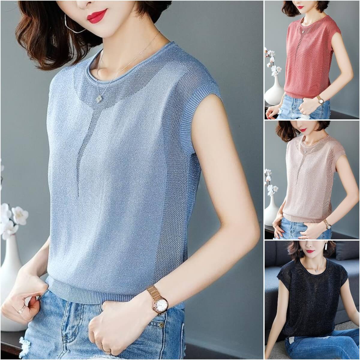 【日本優品~セール】新款寬松百搭薄款冰絲洋氣亮絲镂空無袖背心T恤、顯高顯瘦,不挑身材不挑人穿!現在買很合適!!