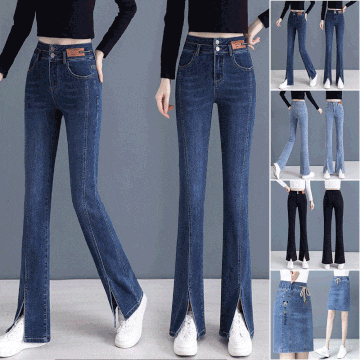 【鄰家女裝】2025春秋新款高腰時尚開叉微喇牛仔褲!顯瘦百搭垂感!精致做工!不褪色易水洗!減齡氣質款~